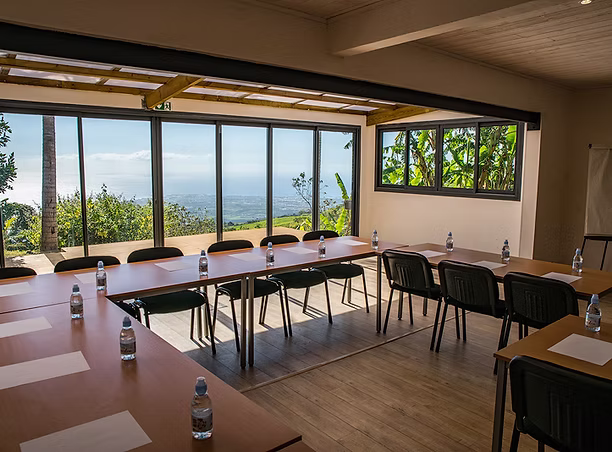 Une salle de séminaire totalement équipée avec une vue ouverte sur le panorama. Une autre façon de se réunir…